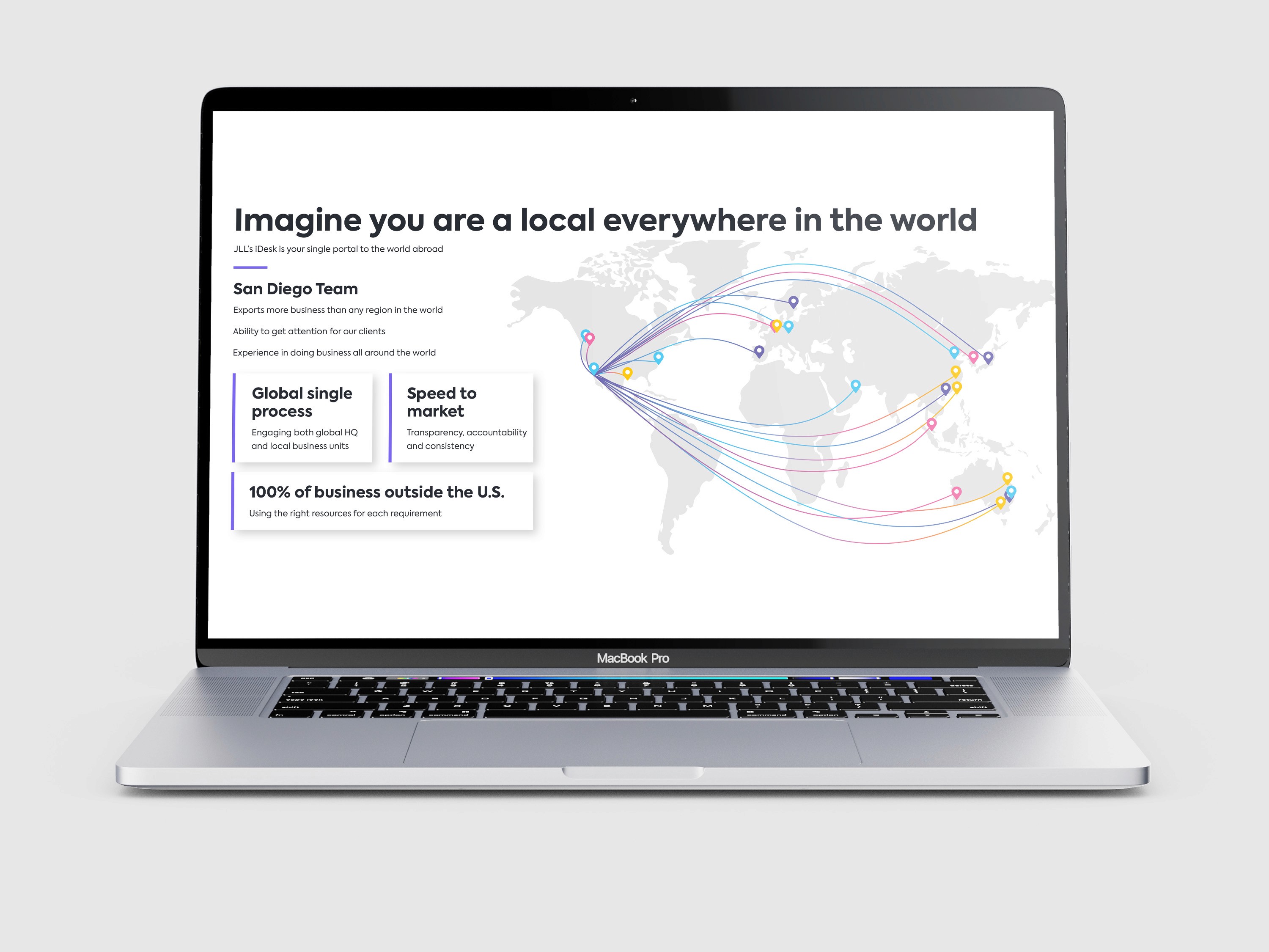 My role in this project was to work with our sales enablement team to create a deck for new businesses. The team wanted to utilize the company's brand for the deck so I studied it before building out the deck. I used InDesign to create the deck and later, this was uploaded to JLL's internal presentation tool.