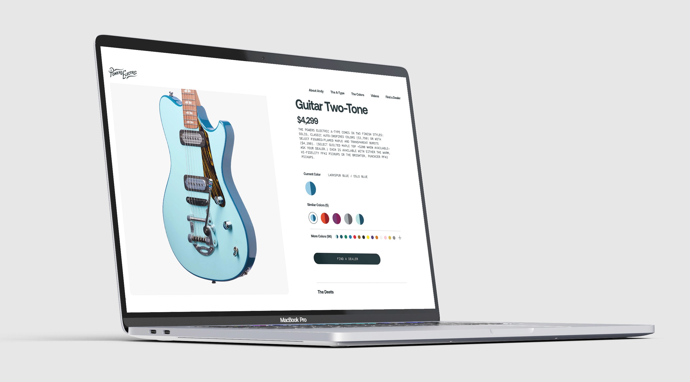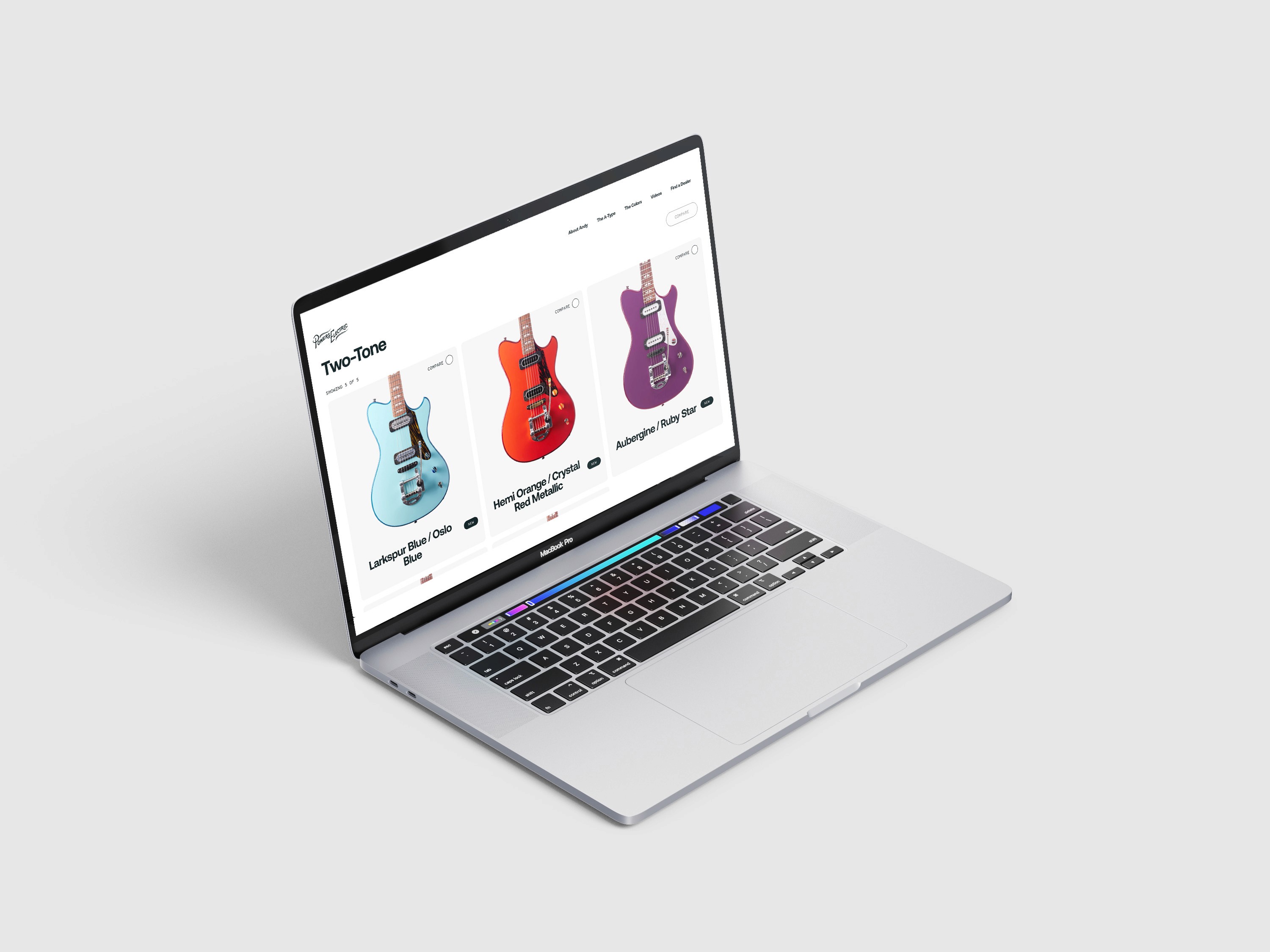 At Powers Electric Guitars, the next launch of electric guitar colors involved two tone guitars, which incorporated one color on the top and a second color on the sides and back. The challenge was to design a user-friendly interface that would showcase the two-tones of the guitars with limited availability of photos - only having access to the front, back, and an angled side, while being on a very tight deadline before product launch. With this, I wanted to show that there are two tones to the guitars using HEX colors as its shown in the homepage slider. Using pen and paper to intially create quick ideas, I created multiple variations before mvoing to low-fidelity and high-fildelity wireframes for team collaboration. The designs prioritized intuitive navigation, ensuring customers could effortlessly browse and select guitar colors. I also tested the design on multiple devices to ensure breakpoint scalability. After presenting to stakeholders, receiving feedback and adjusting the design, I collaborated with a developer to adjust the current website to accomodate the two-tone guitars. This design has been shared by artists, musicians, and dealers on social media.